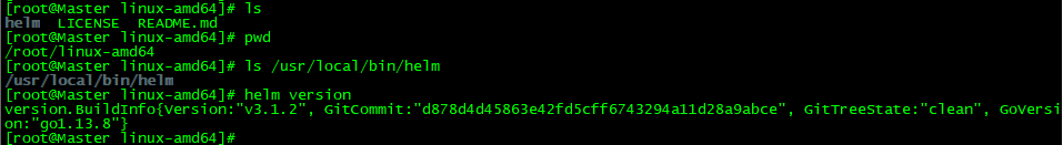 首先我们去上面的 Helm Github 地址把 Helm3 的二进制包下载到本地,然后通过 tar -zxvf 命令进行解压、解压完成之后直接通过 mv 或者 cp 命令把 Helm 包移动到 /usr/local/bin/helm ,然后 Helm3 就已经安装完成了。我们可以通过 helm version 命令查看 Helm 安装版本、我这里安装的是 v3.1.2: