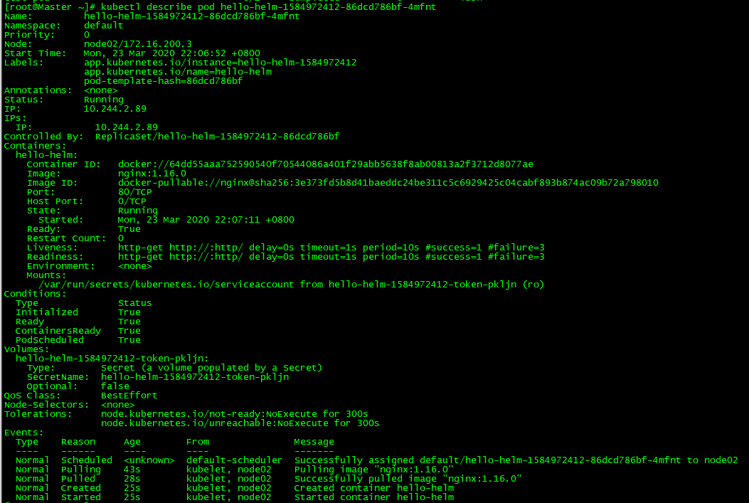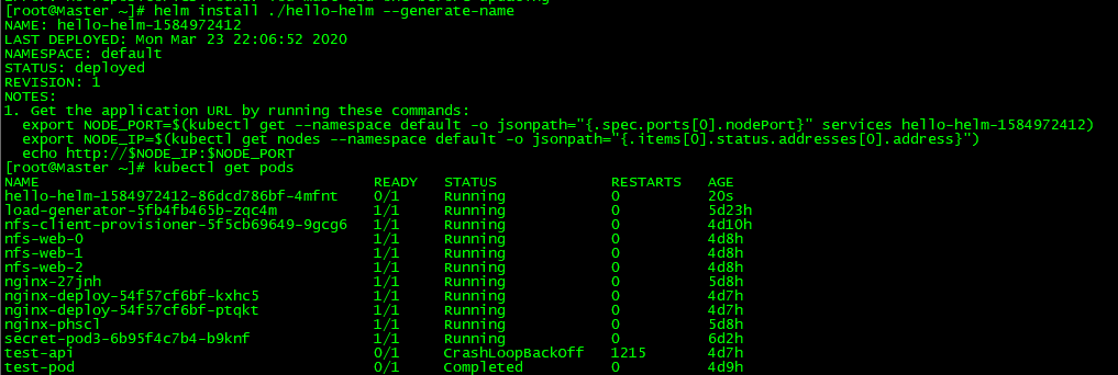 现在我们来尝试安装一下这个 Chart 。在 Helm 2 中,如果没有指定 release 的名称,则会自动随机生成一个名称。但是在 Helm 3 中,则必须主动指定名称,或者增加 –generate-name 的参数。比如: